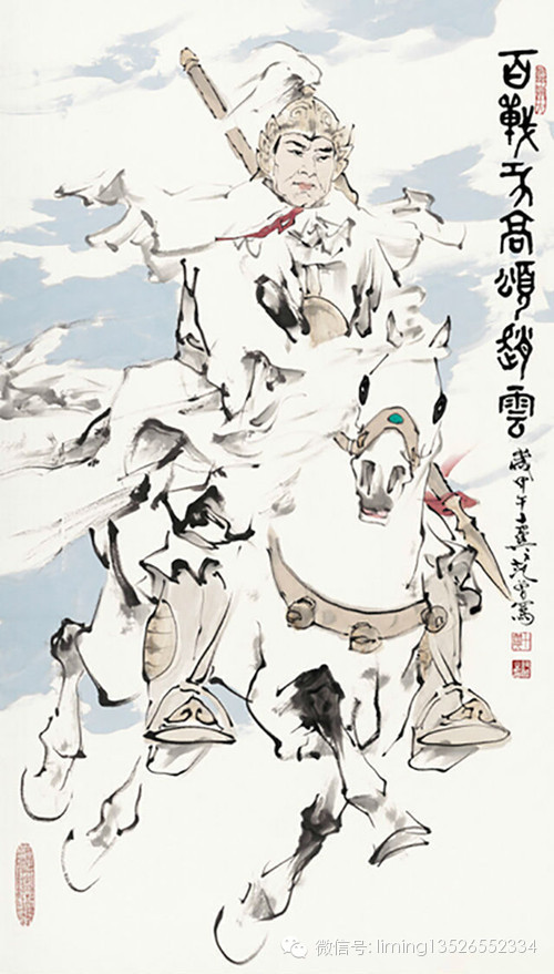 作为国礼赠送的赵云画像约14平尺,市场价值在1000万上下。画中,赵云一身白盔白甲,背龙胆亮银枪,身骑白龙马,英姿飒爽、所向披靡的常胜将军形象跃然纸上。画像题为“百战功高颂赵云”。这幅画的作者,正是中国书画大师、著名国学家、诗人范曾先生。