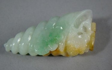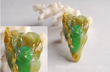 菱角:翡翠上带有菱角的图案,寓意伶俐,如果菱角和葱在一起表示聪明伶俐。