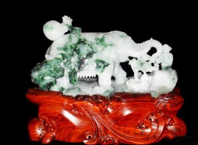 大象:翡翠上带有大象的图案,寓意吉祥或喜象。如果大象与瓶在一起表示太平有象。