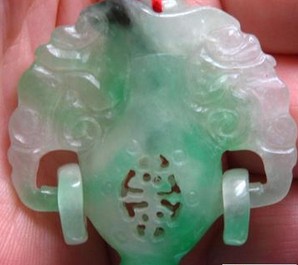宝瓶:翡翠上带有花瓶的图案,寓意平安。如果瓶子与鹌鹑和如意在一起就表示平安如意。如果瓶子与钟铃在一起就表示众生平安。