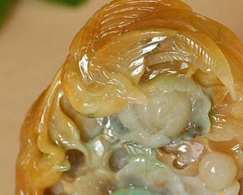 童子骑龙:翡翠上带有童子骑龙的图案,寓意状元及第。
